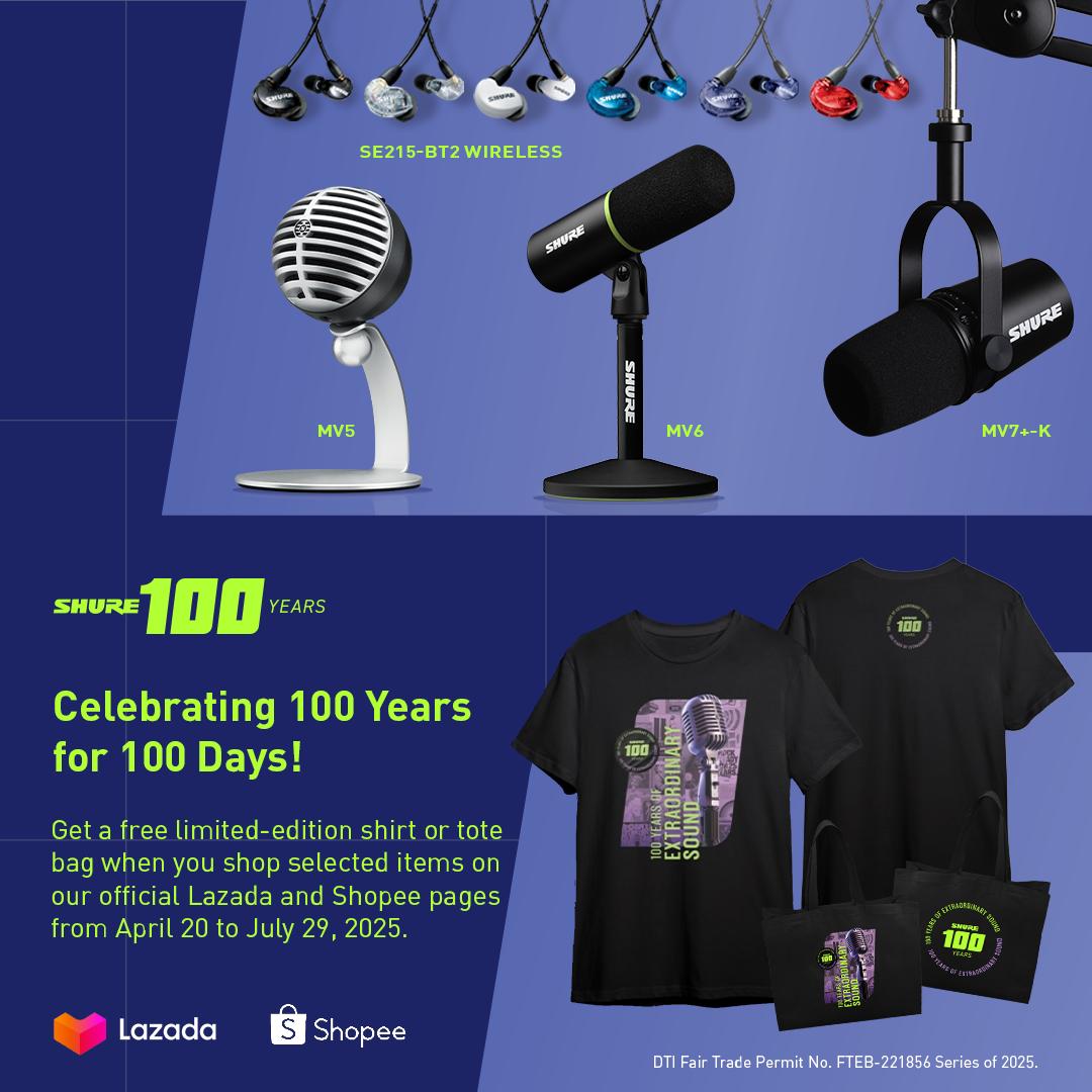 Get a FREE limited-edition shirt or tote bag when you shop selected Shure items on our official Lazada and Shopee stores.